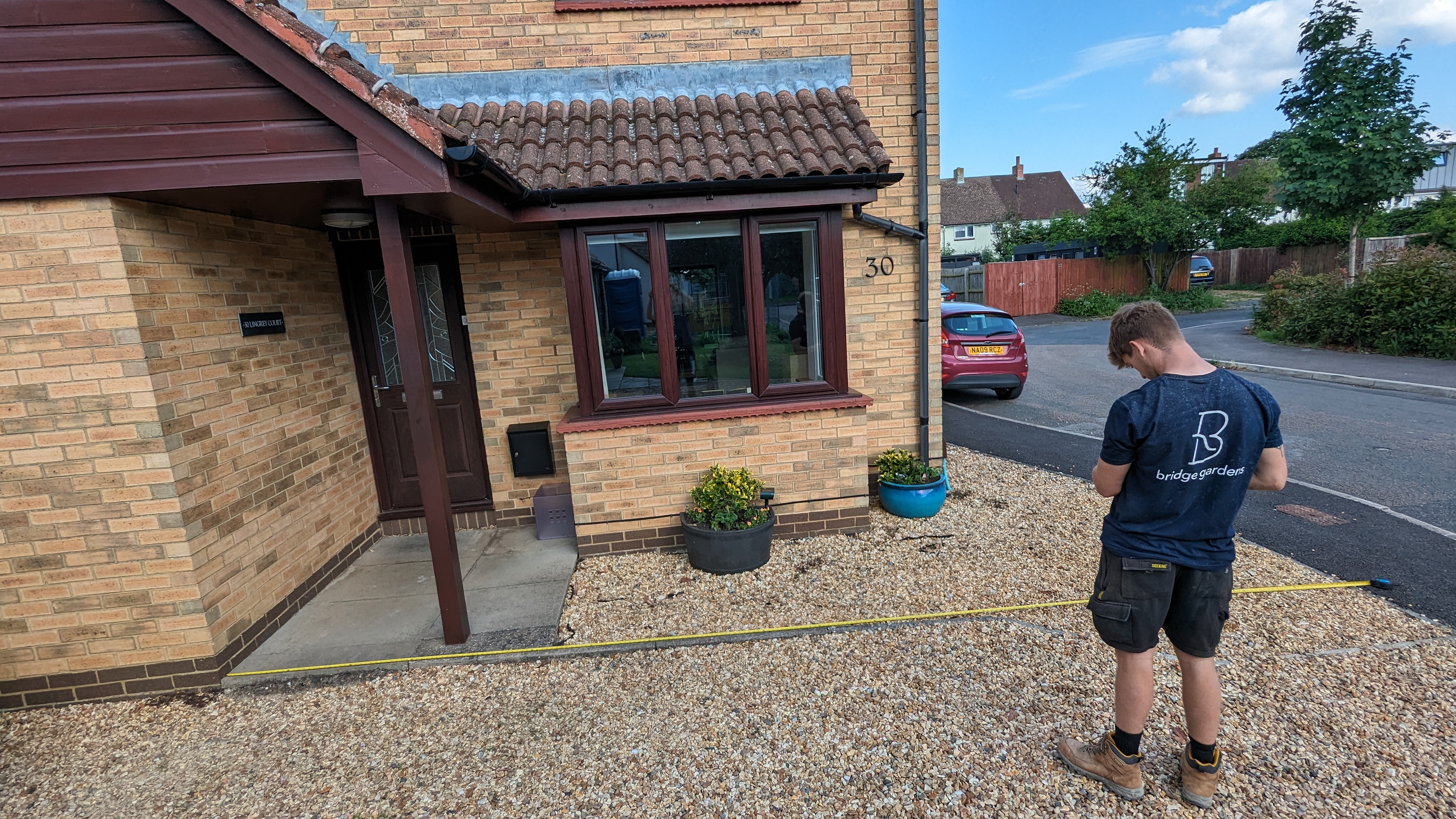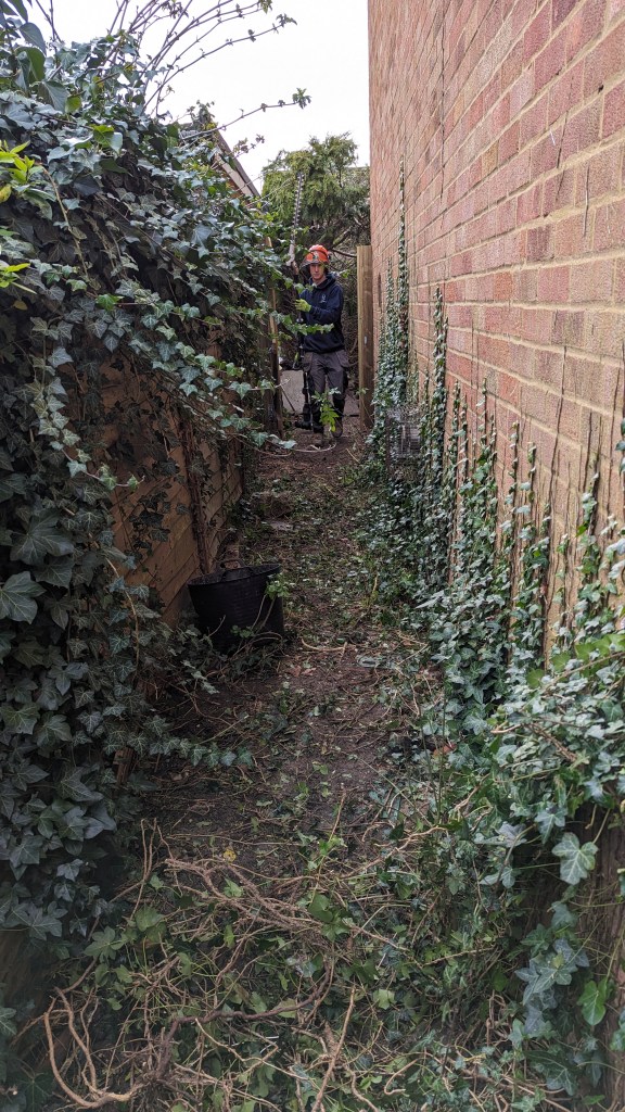 This property in Royston had an overgrown side access path. We cleared the overgrowth to reveal a lot of large concrete slabs. Our team suggested to the homeowner that we could break up the slabs and repurpose as crazy paving. We used recycled crushed concrete as a sub base making this project a good example of how recycled concrete can be used to achieve great results.